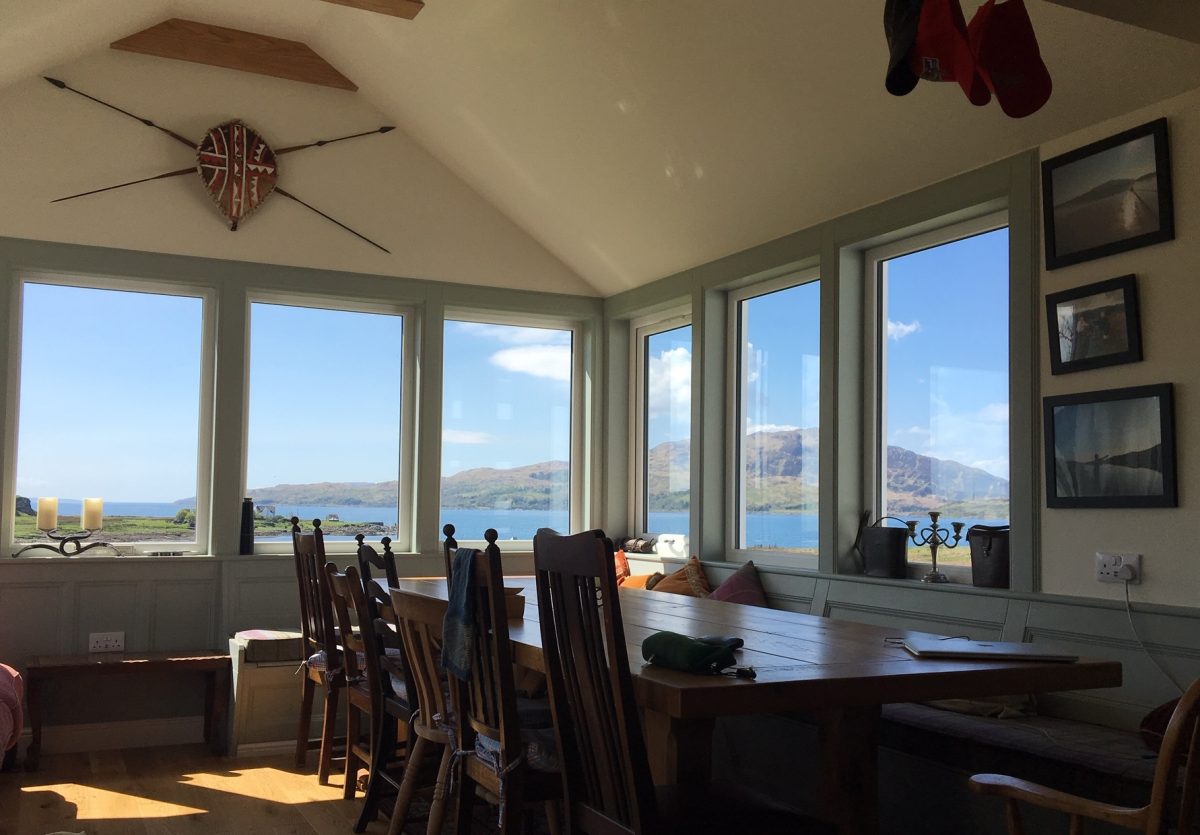 Tous nos groupes de chasseurs sont accueillis dans le lodge de chasse du territoire, avec vue sur la mer. Un cadre idéal pour les « après chasse » et des nuits au calme le plus complet ! Une cuisinière prépare tous les repas pour les chasseurs, à base de produits locaux et frais (viande, race locale de Luing – poisson – fruit de mer).